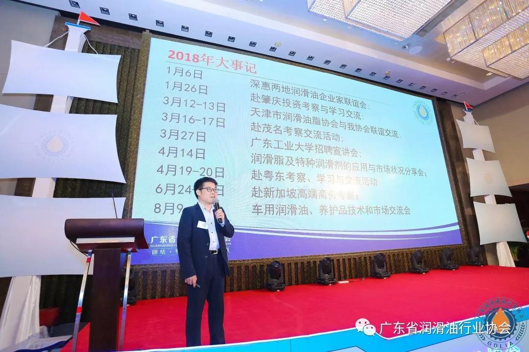 廣東省潤滑油行業(yè)協(xié)會(huì) 潘傳藝秘書長作了《2018年協(xié)會(huì)工作回顧》演講。在2018這一年里,我們協(xié)會(huì)已在廣州、深圳、肇慶、茂名、珠海、東莞、上海、新加坡等地方舉辦了各種各樣的精彩活動(dòng),涉及了產(chǎn)業(yè)園投資考察,潤滑脂、特種潤滑劑、金屬加工液、車用油、添加劑等領(lǐng)域的技術(shù)分享會(huì),還有企業(yè)家聯(lián)誼交流會(huì),人才招聘會(huì)、組團(tuán)參展、團(tuán)體標(biāo)準(zhǔn)編寫培訓(xùn)、行業(yè)調(diào)研、走訪央企等活動(dòng)。不斷地?cái)U(kuò)大協(xié)會(huì)的影響力,發(fā)展新會(huì)員的加入,使我們這個(gè)大家庭的成員越來越多。