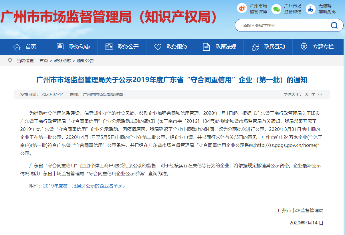 近日,廣州市市場監(jiān)督管理局對2019年度廣東省“守合同重信用”企業(yè)進(jìn)行公示,我司憑借著重信守約的行為準(zhǔn)則,健全的合同管理體系,誠信經(jīng)營,規(guī)范管理,順利通過了最終評審,成功獲得了廣東省“守合同重信用”企業(yè)證書。